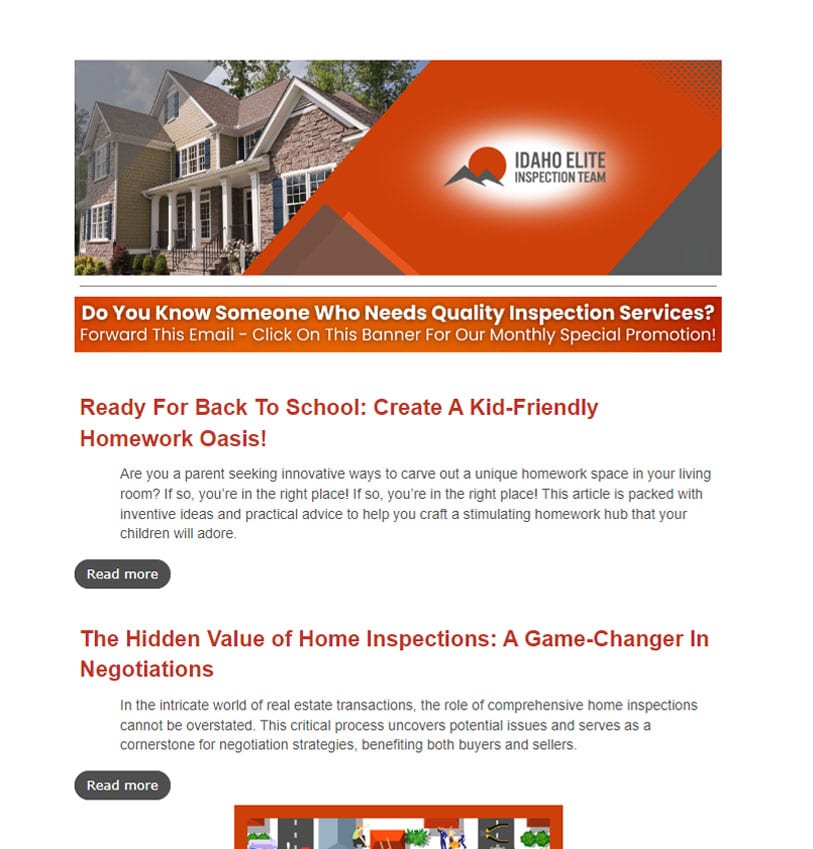 A newsletter is a great way to re-engage with past clients. By keeping them updated with the latest in the home inspection world, you can remind them of your services, leading to potential repeat business.